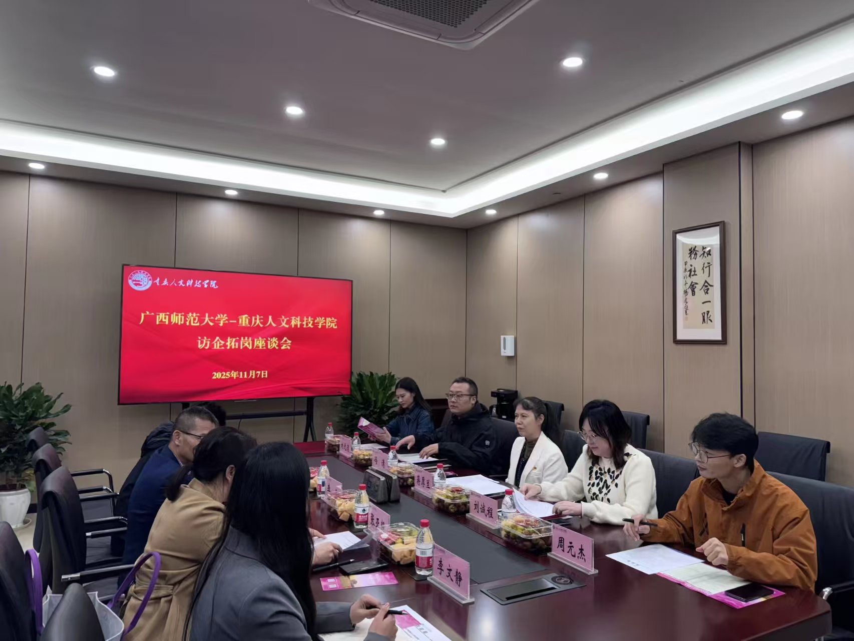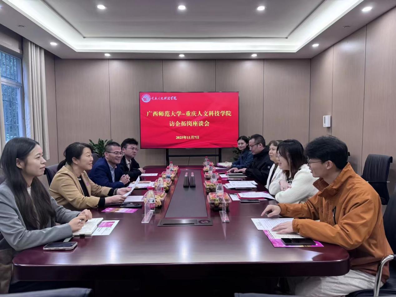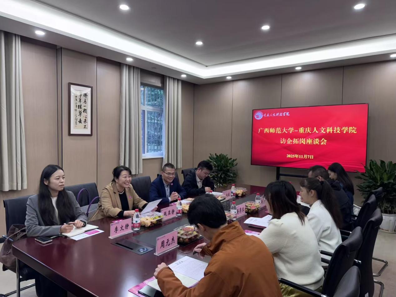 2025年11月7日下午,广西师范大学一行4人在党委研究生工作部部长李颖的带领下到我校干部人事处开展访企拓岗座谈交流。
