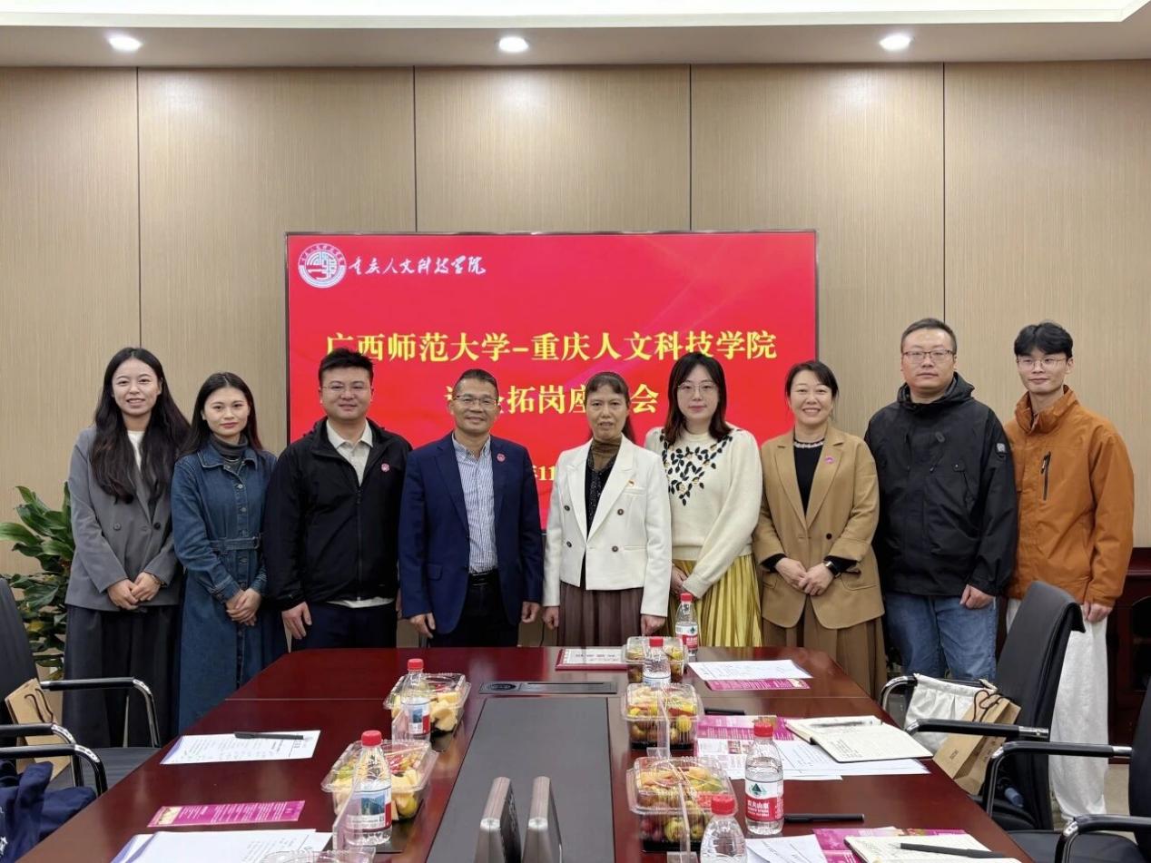 随后,李颖部长介绍了广西师范大学的基本情况及2026届毕业生情况。他表示,广西师范大学建校90余年来,构建了特色鲜明的硕博人才培养体系,此次“访企拓岗”是学校为毕业生拓宽就业渠道、搭建成长平台的务实之举,重庆人文科技学院的发展成就令人瞩目,双方在人才培养与师资需求上高度契合,期待以此次交流为契机深化合作,实现资源共享,发展双赢。