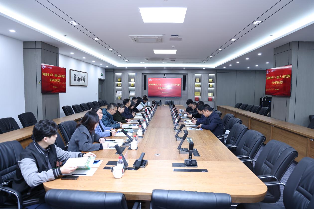 参观结束后,双方在第十七教学楼17203会议室举行座谈会,西南林业大学就业工作处处长李军、文法学院党委书记杨欣、就业工作处副处长孙大成,我校执行校长曹勇、校长助理王璐、干部人事处处长蒋厚兰、相关二级学院及职能部门负责人,以及校友代表共同参会。